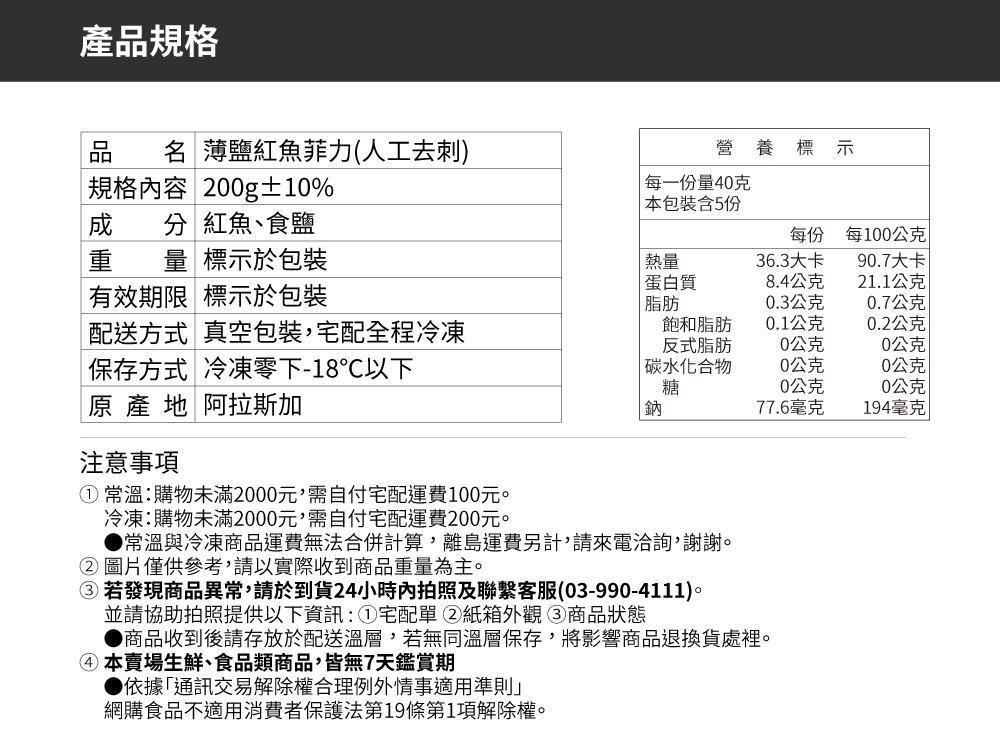 【新上市】薄鹽紅魚菲力